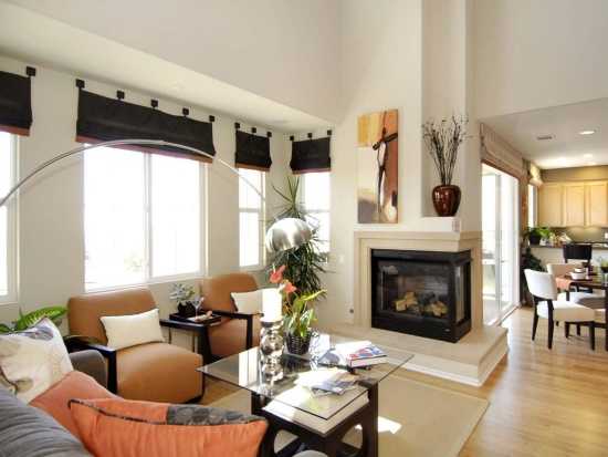 Современная гостиная с камином – это модный дизайн, привлекательная цветовая палитра, сочетание нейтральных тонов с яркими акцентами и оригинальные текстуры.