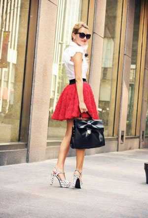 Особенно в летний период года становится актуальной белая короткая юбка-пачка, которую можно комбинировать с любыми другими предметами гардероба, обувью и аксессуарами. Например, для выхода в свет или торжественного мероприятия к ней можно подобрать блестящую черную маечку, расшитую пайетками или украшенную необычной аппликацией, для дружеской прогулки – футболку с прикольным принтом, а для создания экстравагантного образа – грубую кожаную куртку-косуху и кеды или массивные ботинки в мужском стиле.