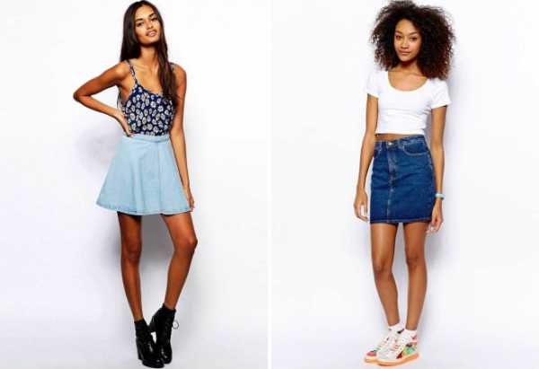Такие варианты подходят для любого времени года. Летом они позволяют продемонстрировать окружающим загорелые ножки, а в прохладный период составляют стильный ансамбль с плотными колготами, леггинсами или гетрами. К тому же, они прекрасно сочетаются с любым видом обуви – как с туфлями или босоножками на высоком каблуке или танкетке, так и с удобными кедами или кроссовками. Верх к такому изделию тоже подобрать не сложно – короткая юбка с завышенной талией из денима отлично комбинируется с кроп-топами или любыми майками и футболками, а классическая вариация – с рубашками или блузами.