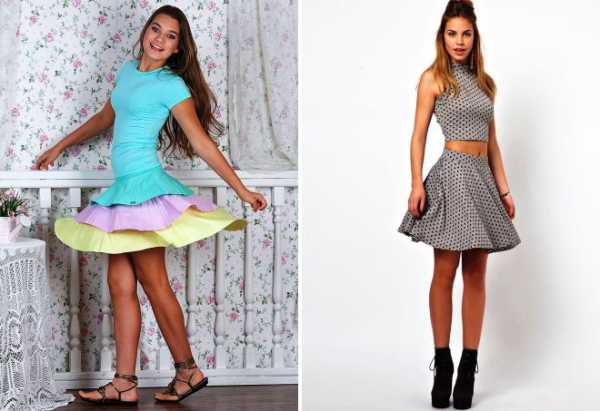 - миниатюрным модницам – мини-юбки с вертикальными или диагональными линиями контрастных оттенков.