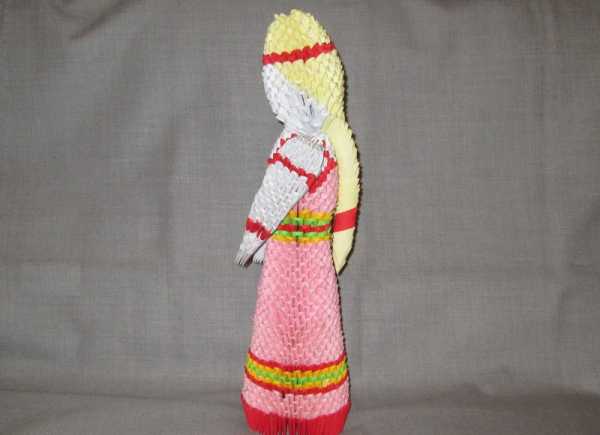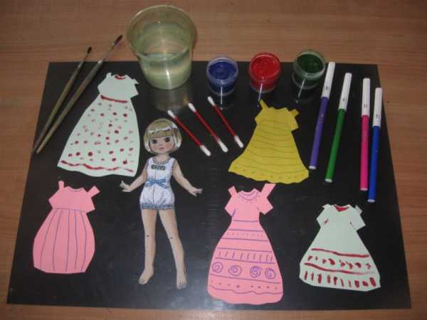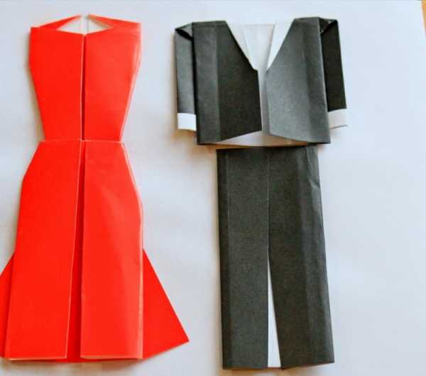 Сейчас куколки из бумаги продаются с разной одежды, что не настолько интересно в сравнении с их созданием собственными руками. Предлагаем, использовать имеющуюся инструкцию по созданию наряда, сложить эксклюзивное платье из разноцветной бумаги, ориентируясь на такую технику, как оригами. Его возможно применять в аппликации, либо целой композиции.