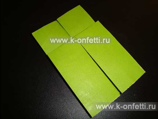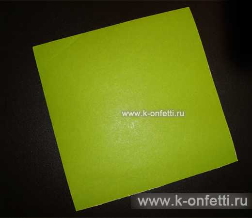 Приступаем к созданию пышной юбки. Для этого бумагу другого цвета складываем в виде квадрата в 4 слоя.