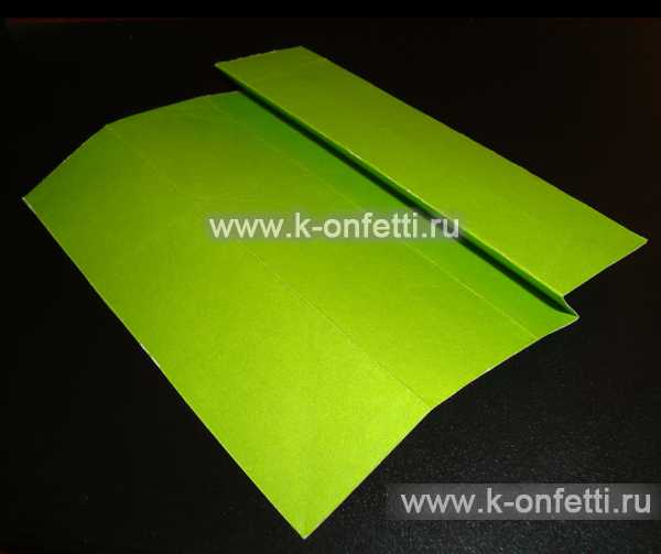 ► Разворачиваем лист, и укладываем его сгибами вниз, подгибаем вторую половинку правой стороны к центральной линии, также поступаем с левой стороной.