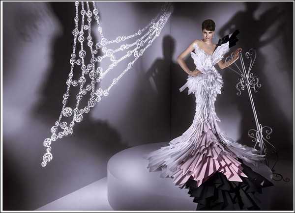 Непосредственно бумажные варианты дают возможность модельерам продемонстрировать полностью талант в конструировании. Помимо этого данного вида платья великолепно смотрится на модели, так как оно складывается непосредственно на ней, применяя ножницы, а также обычный клеевой состав, можно применять клей ПВА.