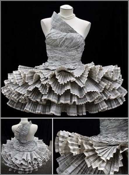 Если вы посмотрите возможные варианты платьев в интернете, то удивитесь, насколько элегантными и женственными получаются такие наряды из обычных газетных листов. Конечно, для их выполнения нужны определенные навыки, выкройки и даже специальная каркасная основа, чтобы платье держало форму.