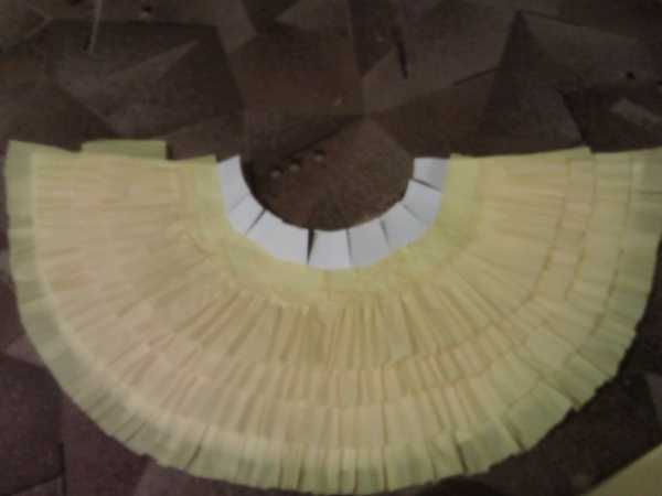 Переходим к украшению низа. Для того чтобы юбка получилась пышная, салфетки приклеиваем гармошкой плотно друг к другу.