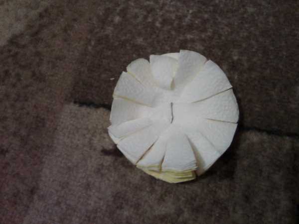 Делаем надрезы по кругу и распушиваем края салфетки.