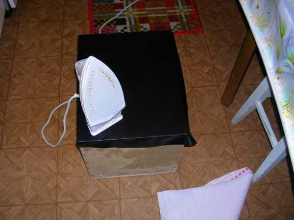 Сняв всю фурнитуру я начал оклеивать корпус сабвуфера самоклеящейся пленкой с имитацией под кожу. Пленка клеится очень просто — нужно прогладить её утюгом через обычную бумагу или хлопчато-бумажную ткань.