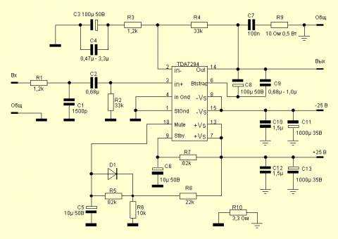 | Хочу вам рассказать, дорогие господа радиолюбители, о том как я делал сабвуфер в свою комнату. Сперва хотел изготовить основной канал (на бас) на микросхеме TDA2050 и для двух сателитов — на TDA2030. Как вы знаете, так сделаны почти все недорогие китайские вуферы. Но потом немного поразмыслив решил не уподобляться китайским братьям и сделал заметно помощнее. На бас прикупил микросхему TDA7294, а для сателитов поставил уже упомянутую TDA2050. Думаю будет неплохо. Две колонки по 24 Ватта и основной мощностью в 60 Ватт.