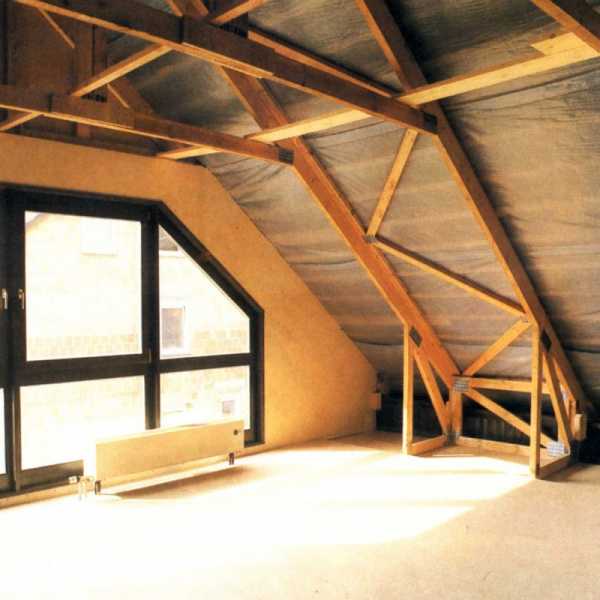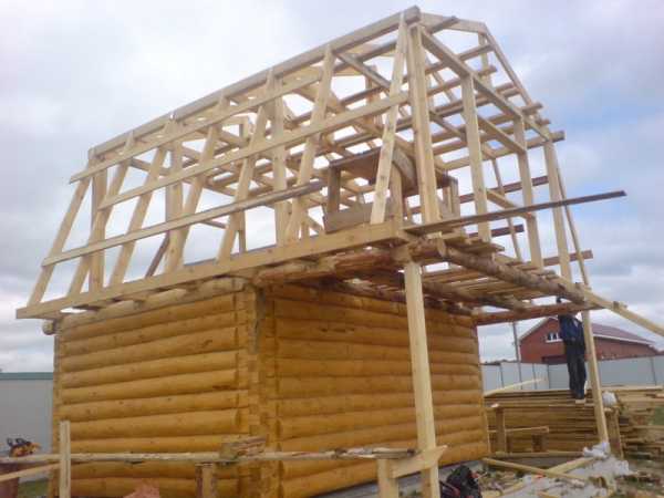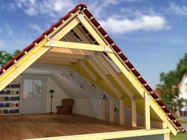 - устройство каркаса. Под этим подразумевается прикрепление к мауэрлату стропил. Оптимальный размер балок принимается сечением 7х15 см.