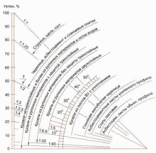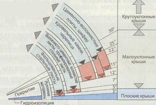 - вид кровельного материала, поскольку для каждого из них существует рекомендуемый угол наклона;