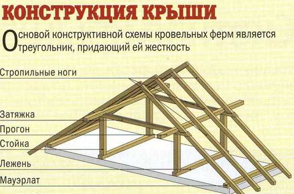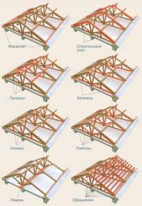 Главной деталью стропильной системы является стропило. Кроме этого конструкция содержит следующие основные элементы: