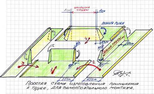 В случае укладки на кровлю битумной черепицы примыкание к трубе обеспечивает ендовый ковер. Для натуральных черепиц применяют специальную клейкую ленту вместе с металлическим фартуком в соответствии с цветом покрытия для крыши.