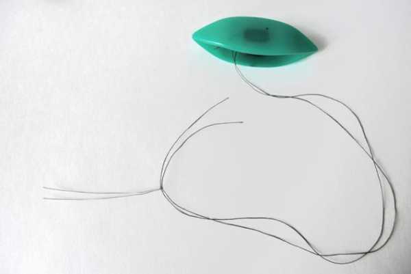 Когда нити будут намотаны, нужно нанизывать бусины. Сделаем специальный инструмент «шпильку». Кусочек проволочки согнем пополам — готово. Делаем, как на фото.