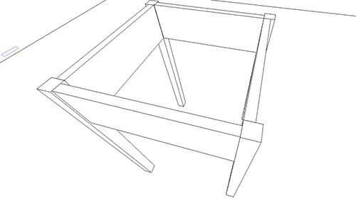 ![]() | В результате получается такая конструкция. Однако она ещё не устойчива, поэтому понадобятся соединительные планки из бруса. |