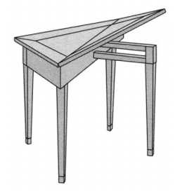 Стол-кресло обязан своим появлением на свет средневековой практичности. В Средние века жилища были маленькими и продуваемыми сквозняками. Любая мебель была дорогая, все делалось ручными инструментами. И если предмет мебели мог выполнять больше одной функции – что ж, тем лучше.Стол-кресло явно универсален. При опущенной крышке это стол. С поднятой крышкой – сиденье. И как с большинством универсальных вещей, его функциональность далека от совершенства.С развитием мебельной отрасли стол-кресло становился более совершенным по конструкции и изящным по внешнему виду. У показанного здесь изделия есть ножки и подлокотники, прикрепленные к бокам сиденья соединениями шипом в гнездо. Выраженное завершение ножки в форме башмака делают кресло устойчивее, а подлокотники – комфортнее. В кресле даже есть выдвижной ящик под сиденьем – более утонченное хранилище, чем коробка с крышкой. Столешница крепится врезкой ласточкиным хвостом.