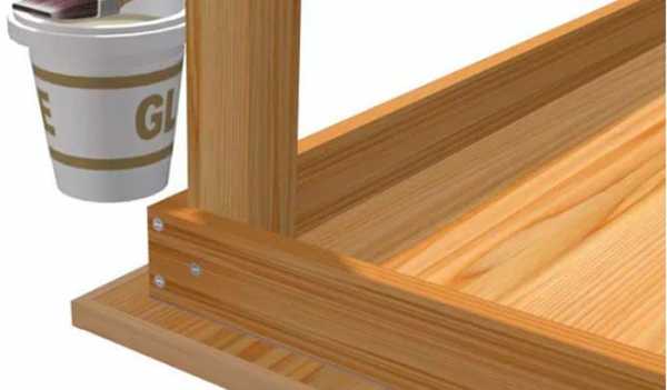 При желании сделать конструкцию крепче, прежде, чем соединять ножки со столешницей, их верхнее основание промазывают клеем.