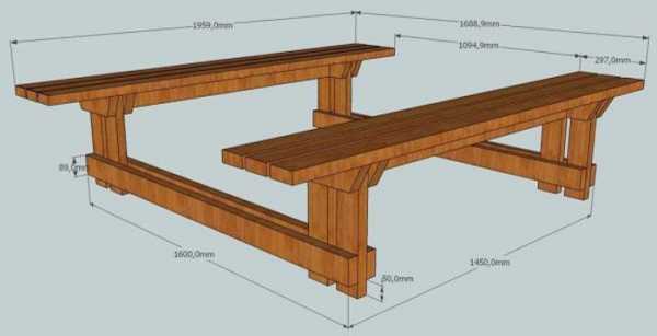 Садовый стол из дерева своими руками со скамьямиРассмотрим, как изготовить стол со скамейками.