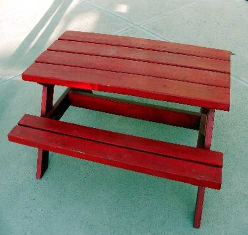 ![]() | В результате получаем вот такой стол. Далее хорошо зашкуриваем все поверхности, покрываем антибактериальной пропиткой, морилкой, краской или просто лаком. Можно также декорировать стол по технике обожжённой древесины. |