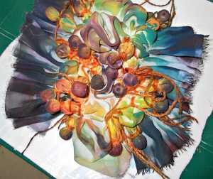 Многие художники в своих шедеврах совмещают узелковый и холодный батик, окрашивая вначале фон при помощи узлов и перевязок, а потом уже наносят какие-либо рисунки на готовый фон или с помощью узлов получают нужные им рисунки, а затем доделывают и остальные детали. Получается очень мило и оригинально.