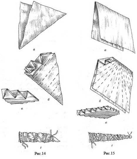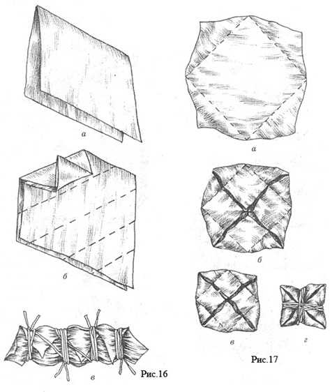 Способ скручивания предполагает тугое скручивание материала и перевязки его затем нитью.