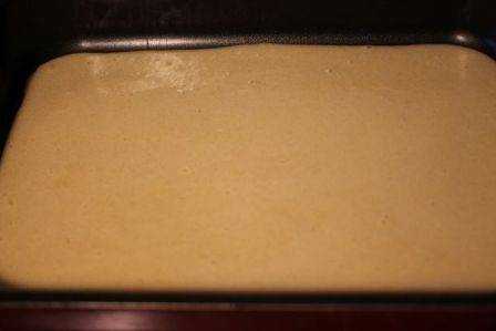 - Распределить тесто в форме с бортами, выпекать 25 минут, охладить.