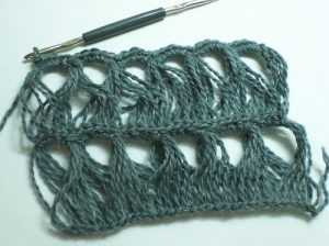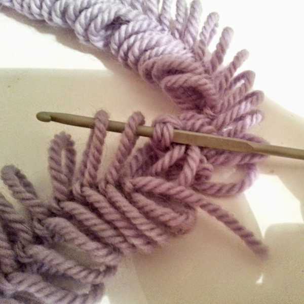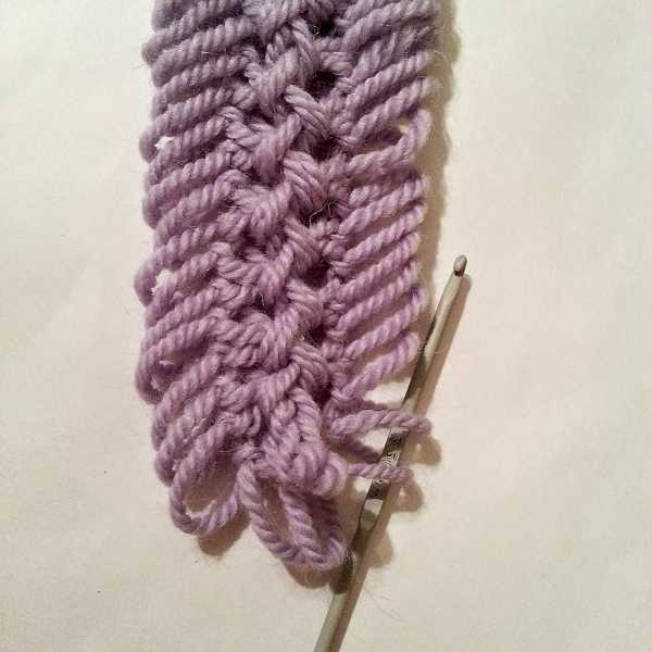 Повторяем, протягивая 2 петли с полосы через 2 петли на крючке: