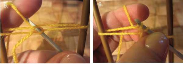 Поворачиваем вилку для вязания по часовой стрелке (если смотреть на нее сверху), крючок переводим вперед (фото 5).