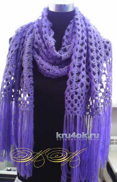 Формируйте узор по схеме, пока длина изделия не достигнет нужного размера. Связанный шарфик постирайте вручную в теплой мыльной воде.