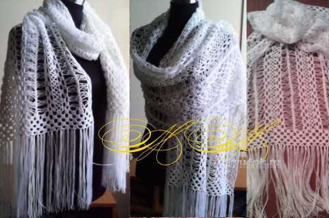 На вилке можно вязать разные вещи: шарфы, палантины, блузы, шапки и другие. Вязание крючком на вилке позволяет создавать воздушные, очень мягкие, но, тем не менее, хорошо согревающие вещи, особенно если ниточка пушистая.