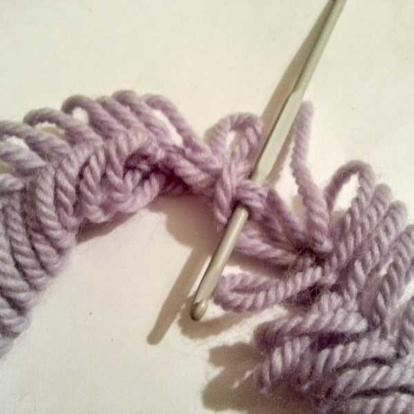 Повторно захватите ниточку, и протяните ее в петельку, как на фото. Продолжите работу по этой схеме, свяжите до нужной длины, и закончите рукоделие.