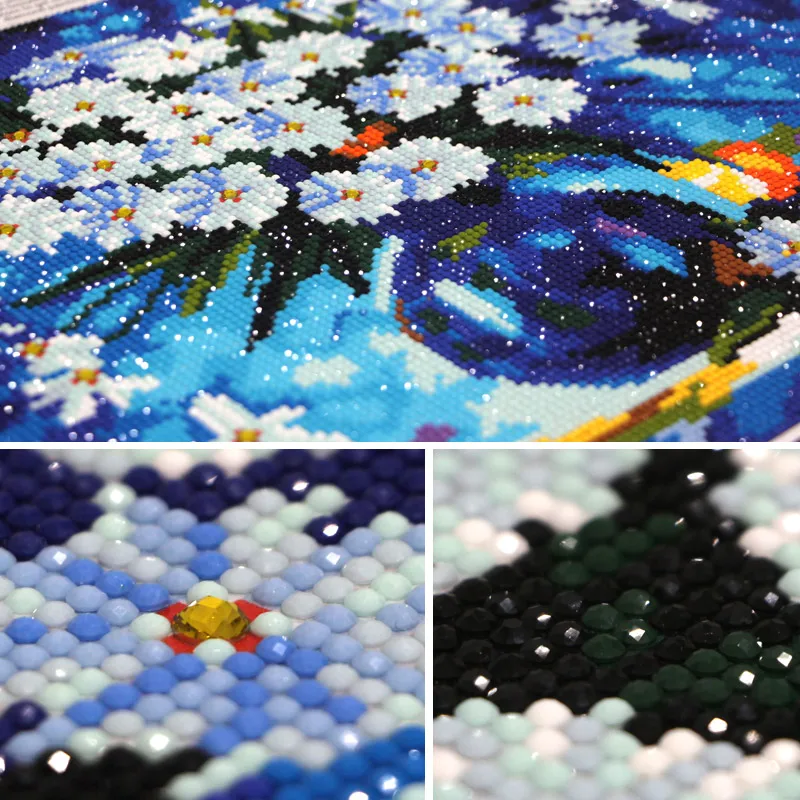 Рождаются картины в технике алмазная вышивка удивительным образом. Неприметные на первый взгляд камни складываются в узор и постепенно вырисовывают детали сюжета. Несколько выложенных рядов или участков уже позволяют рассмотреть блеск и красоту будущей картины.
